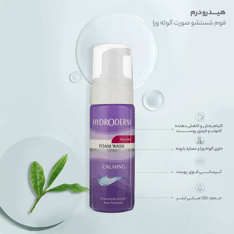 فوم واش پوستهای حساس آلوئه ورا هیدرورم دارای عصارههای گیاهی مانند بابونه و آلوئه ورا است.