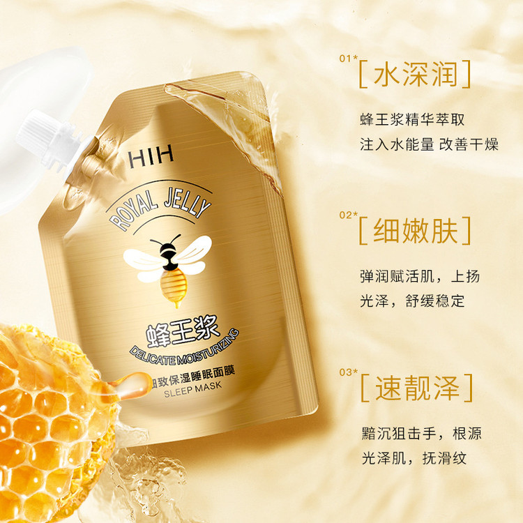 ماسک خواب تقویت کننده ژل رویال HIH حاوی اسانس ژل رویال با بافتی خوب، دارای مواد مغذی و عالی برای پوست است که میتواند از پوست هنگام خواب بخوبی مراقبت کند.