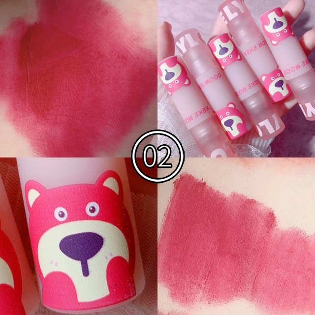 رژلب مایع مات Keke Mood مدل Strawberry Bear جلوه مخملی و نرم به لب میدهد و با بافت مایعی که دارد به لب حجم میبخشد و از خشک شدن پوست لب جلوگیری میکند.