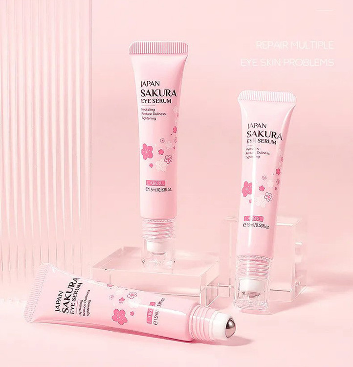 سرم دور چشم رولی شکوفه گیلاس ژاپن لایکو، یک عدد توپ غلتکی در بالای خود دارد تا مواد را هرچه بهتر به پوست شما برساند.