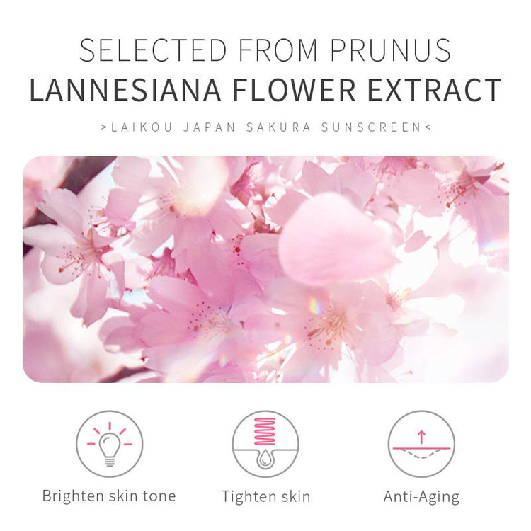 ضد آفتاب LAIKOU JAPAN SAKURA حاوی عصاره گل Prunus Lannesiana می تواند رنگ پوست را روشن و پوست را سفت کند.