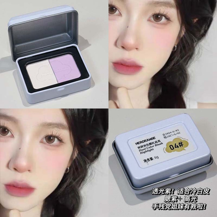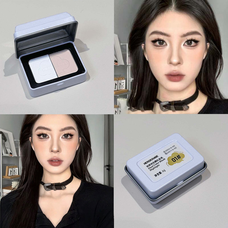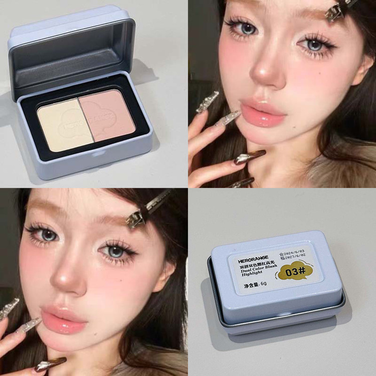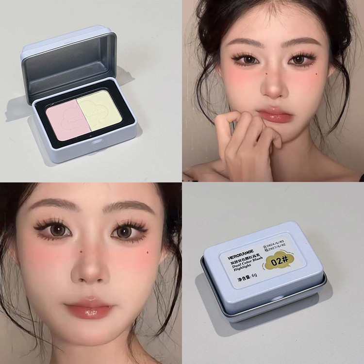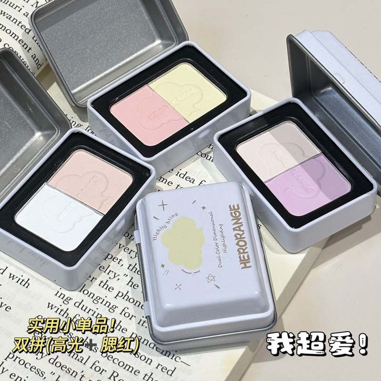 هایلایتر و رژگونه پودری دورنگ جعبه فلزی HERORANGE مدل HR473