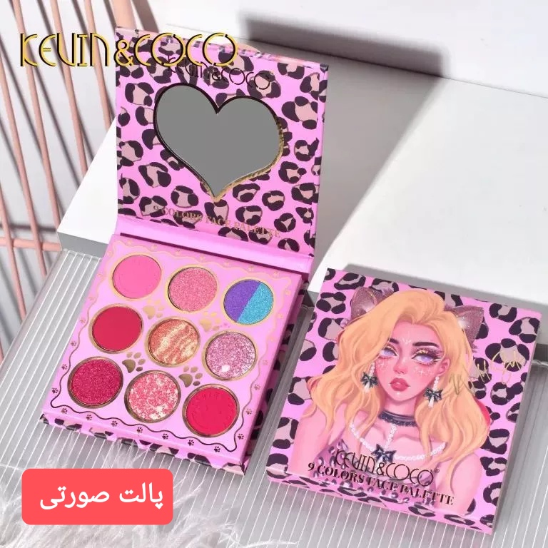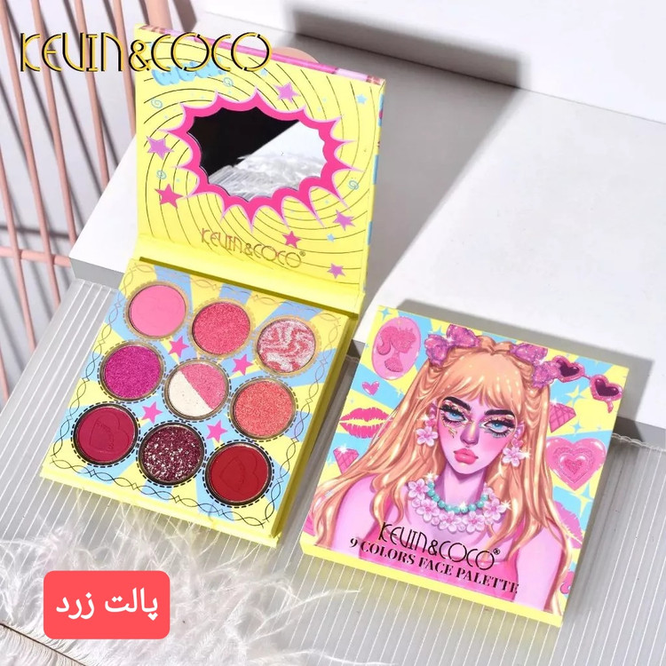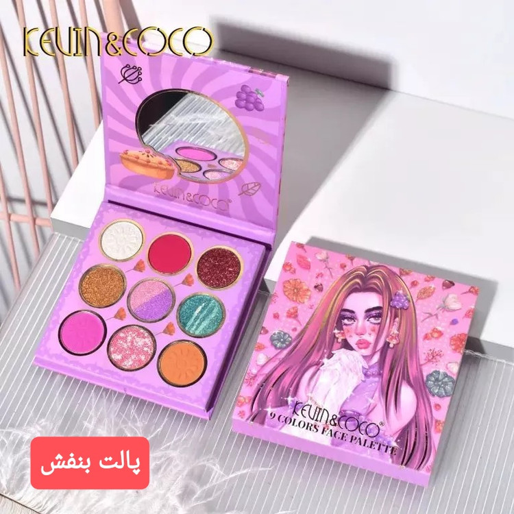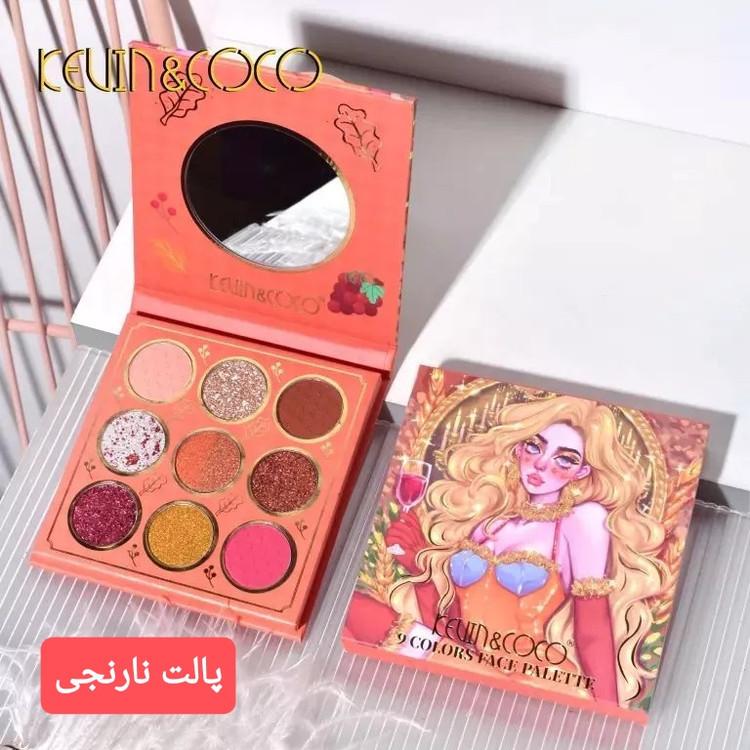 پالت سایه چشم پودری 9 رنگ Kevin & Coco (آینه دار)