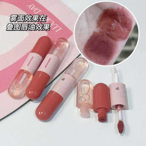 رژلب و لیپ گلاس دوطرفه طرح کپسولی PINKY FOCUS
